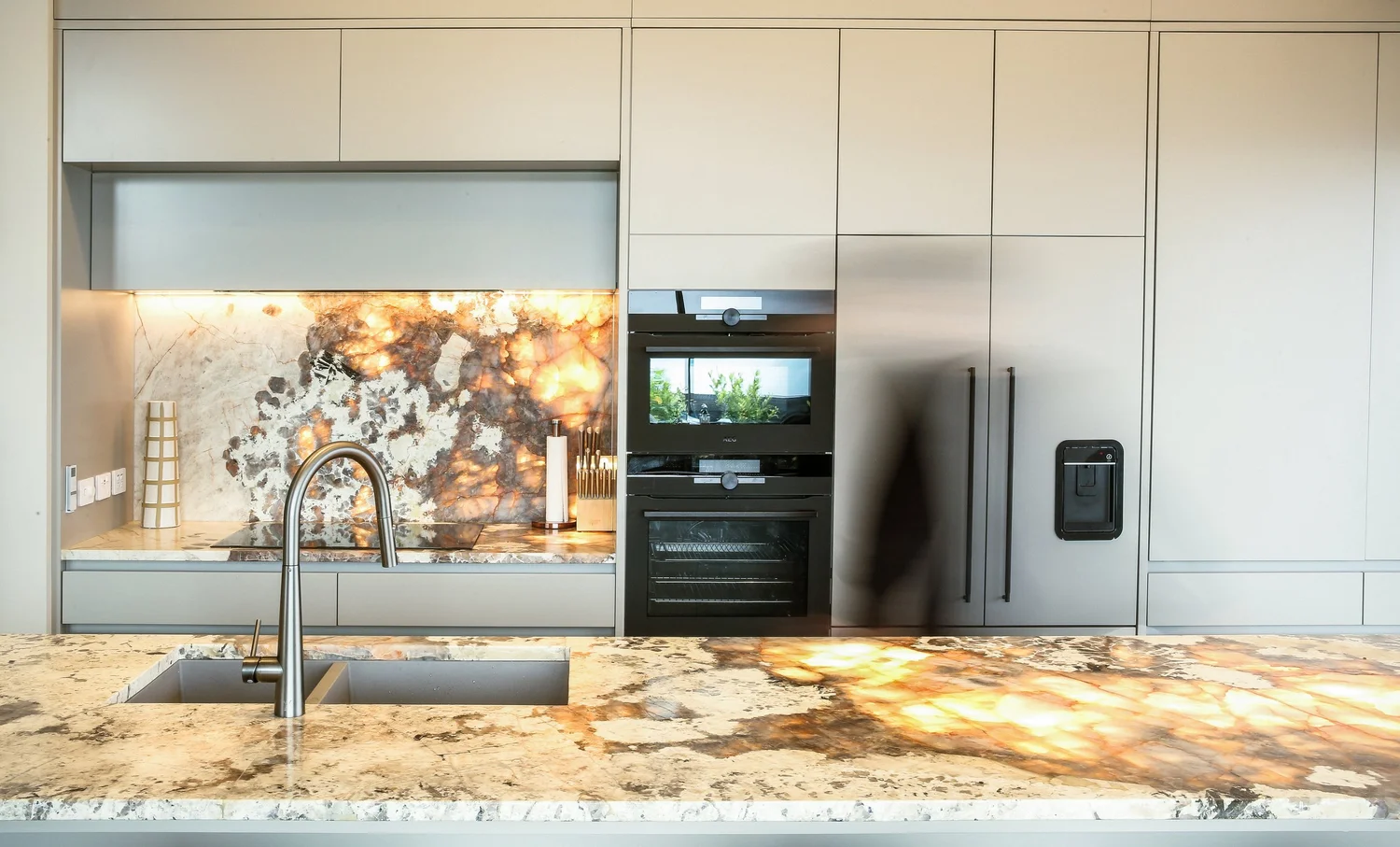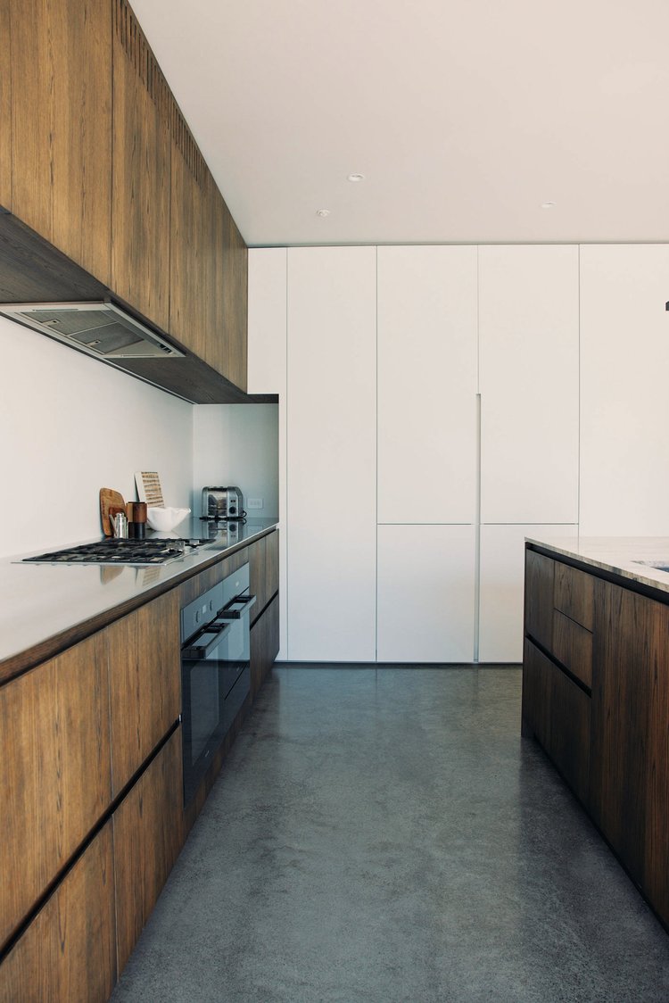 Solid & veneered timbers, lacquered MDF, Rubio oil, stone & steel—considered materials, clean detailing, and hardware that lasts. Less, done better.